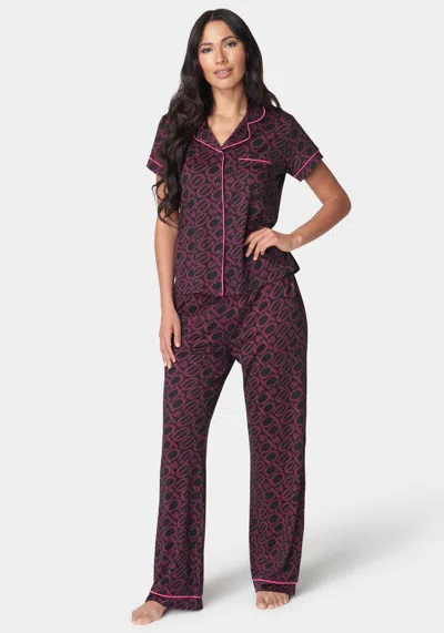 Printed Notch Collar Pant Set In Blush