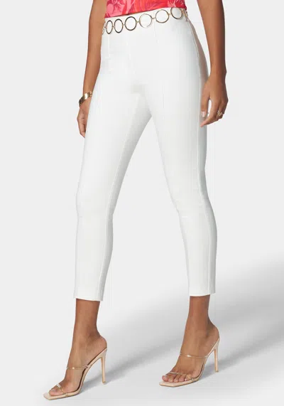 Ring Belt Pintuck Slim Leg Pant In White Alyssum