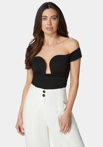 Ruched Cut Out Cold Shoulder Knit Top In Black