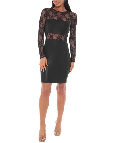 Lace Trim Satin Cocktail Dress In Black