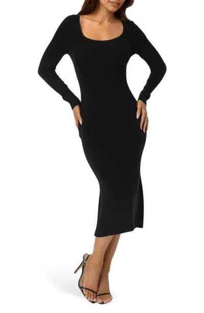 Scoop Neck Long Sleeve Sweater Dress In Black