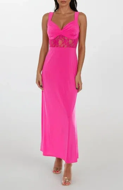 Lace-up Back Ruffle Satin Maxi Dress In Neutral