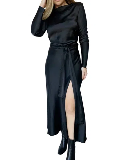 Emery Long Sleeve Tie Maxi Dress In Black