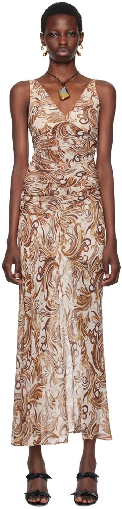 Beige & Brown Jocelyn Maxi Dress In Cream Swirl
