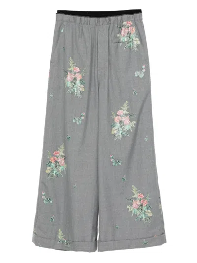 Floral Embroidered Trousers In Gray