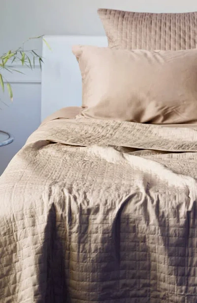 Luxury 100% Viscose Cooling Quilted Brick Coverlet In Stone