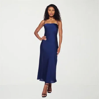 B. Smart Womens Juniors Sleeveless Satin A-line Dress In Blue