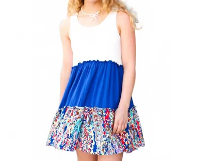 Color Block Sleeveless Mini Dress In Ivory/royal Blue/floral Print In Multi