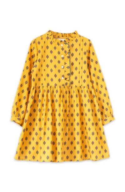 Babies' Toddler Flutter Sleeves Dress With Lace Trim | Provence Meadow In Mustard