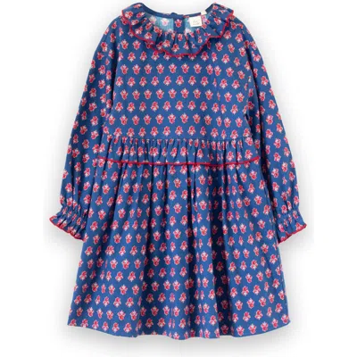 Kids' Girls' Ruffle Collar Long Sleeve Dress In Red And Blue