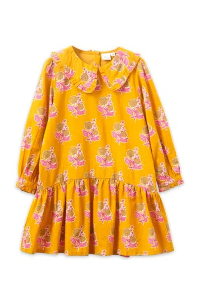 Babies' Girls' Ruffle Collar Long Sleeve Dress In Blue And Mustard