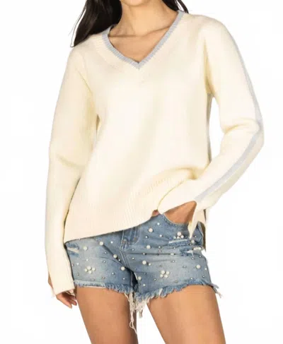 Tricia Contrast Sweater In Cream / Sky Blue In Multi