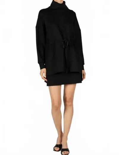 Tunic Sweater W/ Adjustable Drawstring Waist In Black In Multi