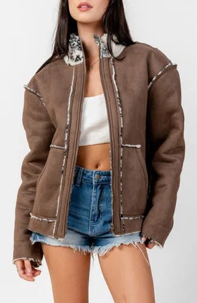 Reversible Faux Shearling Jacket In Brown