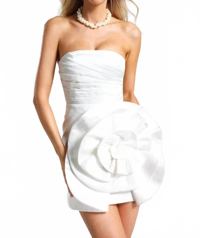 Jaza One Shoulder Flowers High Slit Bandage Mini Dress In White