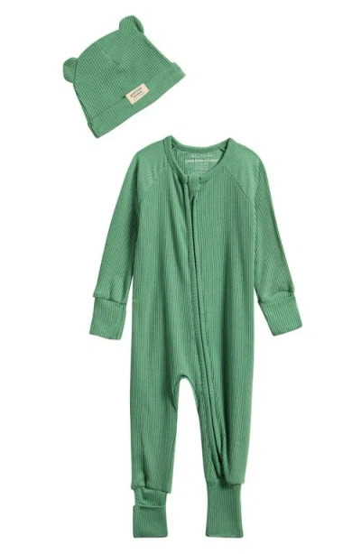 Babies' Rib One-piece & Hat Set In Green