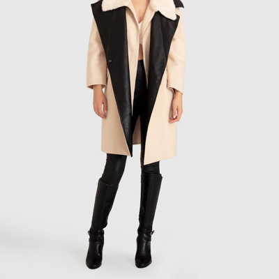 Women's Watch Me Go Oversized Leather Trimmed Coat In Pale Oat