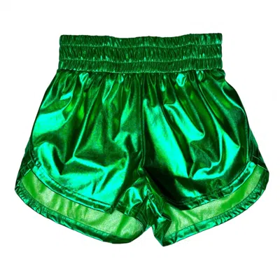 Women's Metallic Athletic Fit Short In Green In Animal Print