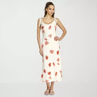 Womens Sleeveless Floral Midi Slip Dress In White