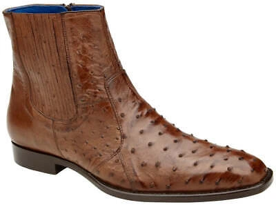 Pre-owned Men's Genuine Ostrich Quill Chelsea Boot Roger Ant. Brandy R55