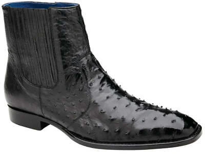 Pre-owned Men's Genuine Ostrich Quill Chelsea Boot Roger Black R55