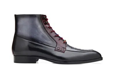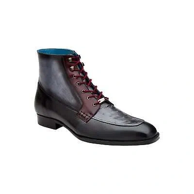Pre-owned Greco Black/gray/burgundy Ostrich Quill /italian Leather Boots R79