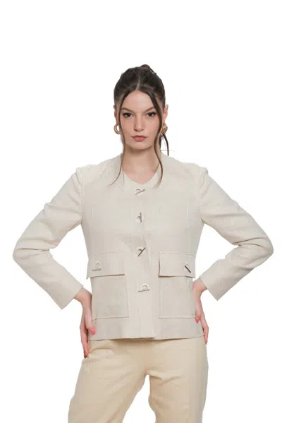 Pre-owned 1750$ Linen Cotton Ivory Woman Sartororial Jacket 42 It / 6 Us / 38 Fr In White