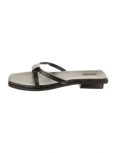 Pre-owned Leather Colorblock Pattern Slides In Neutral