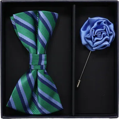 Bow Tie & Lapel Pin Set In Blue
