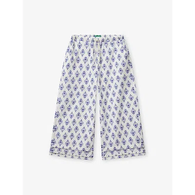 Kids' Blue Paisley-print Wide-leg Cotton Trousers 6-14