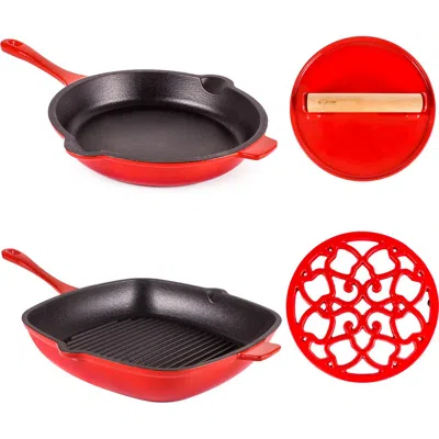 Neo 4-piece Cast Iron Dutch Oven Cookware Set In Red