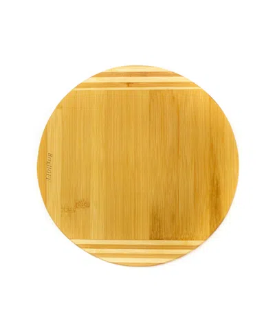 Bamboo Round Cutting Board, Striped In Beige