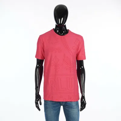Pre-owned 580$ Pink Cotton Terry T-shirt - Iconic Scritto Jacquard