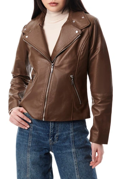 Lambskin Leather Moto Jacket In Clay Brown