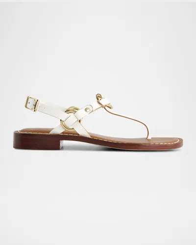 Tuni Leather Thong Slingback Sandals In White