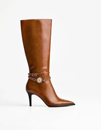 High-heel Boots With Watch Detail In Brown
