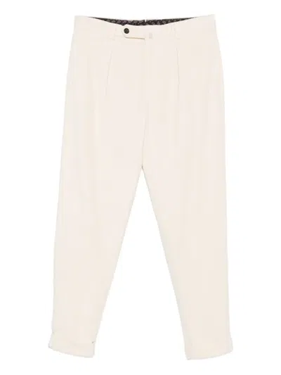Pleated Cotton Trousers In Neutral