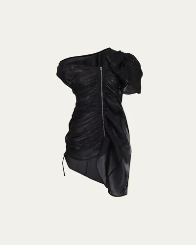 Off-shoulder Decon Draped Zip Front Mini Dress In Black