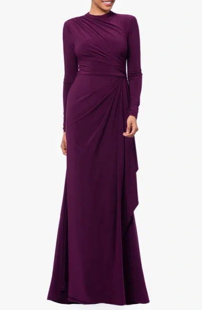 Miriam Long Jersey Draped Back Gown In Wine In Red