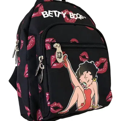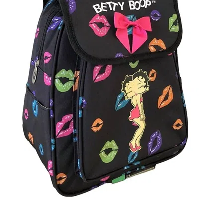 Women's Microfiber Large Backpack In Black With Hearts & Lips In Multi