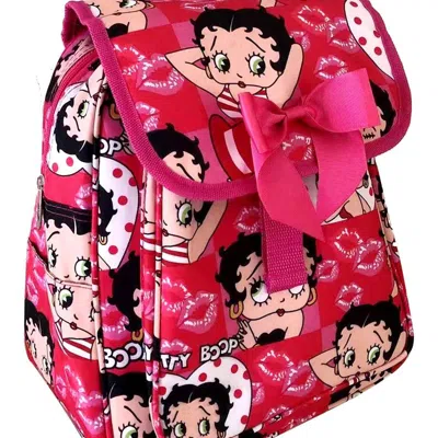 Women's Microfiber Large Backpack In Pink/red With Kisses In Multi
