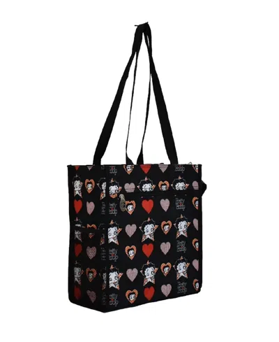Women's Duffel Bag In Black With Hearts In Multi