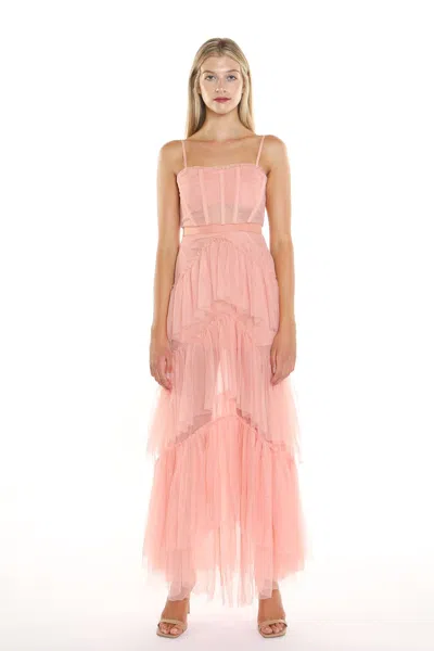 Spaghetti Tiered Mesh Long Dress In Pink