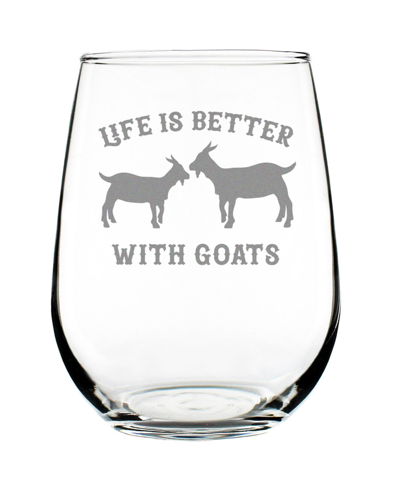 Life Is Better With Goats Funny Goat Gifts Stem Less Wine Glass, 17 oz In Clear