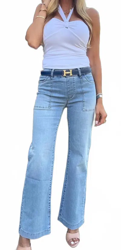 Christine Wide Leg Pants In Ivory Denim In Blue