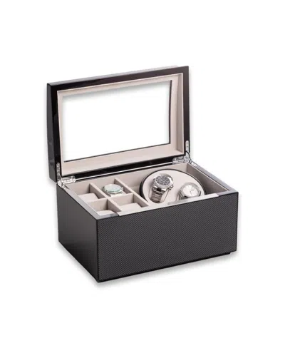 Lacquered Carbon Fiber Finish 2 Watch Winder With Storage For 4 Watches In Grey