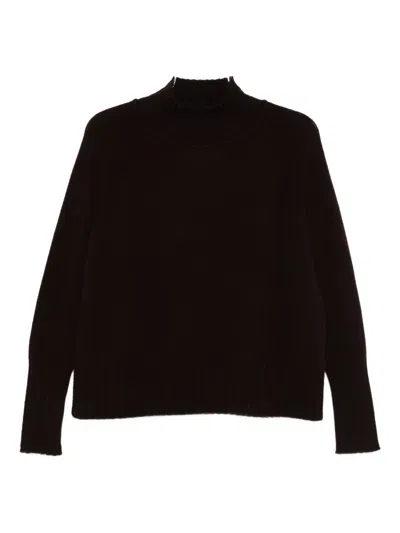 Short-fit Cashmere Sweater With High Collar And Contrasting Knit Pattern In Brown