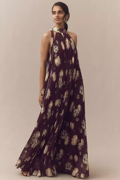 Rosie High-neck Pleated Chiffon Maxi Dress In Purple