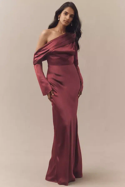 Soraya Long-sleeve Off-the-shoulder Maxi Dress In Burgundy