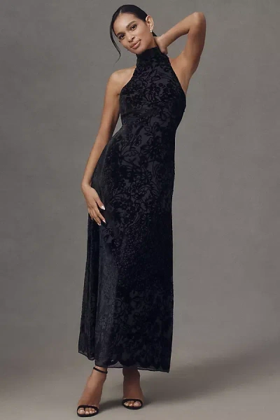 Francesca High-neck Stretch Satin Maxi Dress In Black